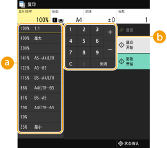 通过使用 <A5->A4/LTR> 等预设复印倍率,或者通过以 1% 为增量设置自定义复印倍率,可以放大或缩小复印件。