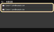 您可以从过去使用的接收方中选择一个接收方。当指定之前使用过的接收方时,本机也可以设置与上次发送文档到该接收方时所使用的相同扫描设置,例如浓度等。