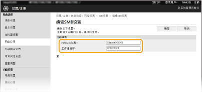 服务器消息区块(SMB)是用于与网络中一台以上设备共享文件和打印机等资源的协议。本机使用 SMB 将扫描的文档存储到共享文件夹。视网络而定,您可能需要设置 NetBIOS 名称和工作组名称。
