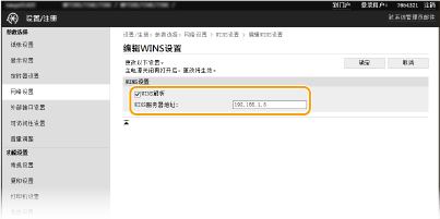 在操作面板上选择设置也可从主页画面中的 <菜单> 访问 WINS 设置。<WINS设置>