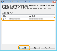 要将本机用作扫描仪,则必须先完成在计算机上安装软件等准备工作。有关详细信息,请参阅在线手册网站上相关驱动程序的手册。在 Windows 中通过无线或有线局域网将本机连接至计算机时,必须使用以下操作步骤在“MF Network Scanner Selector”中注册本机。如果本机与计算机是通过 USB 连接,则不需要此步骤。