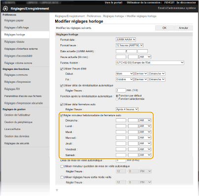 *Si l'appareil ne se met pas hors tension automatiquement à l'heure programmée, le système exécute jusqu'à dix tentatives espacées d'une minute. Si l'appareil ne se met pas hors tension après ces dix tentatives, la mise hors tension est abandonnée pour le jour concerné.