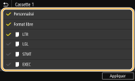 Vérifiez que seules les cases à cocher des formats de papier fréquemment utilisés sont cochées.