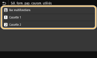 Les formats de papier qui ne sont pas sélectionnés peuvent être affichés en sélectionnant <Autres formats> sur l'écran de sélection du format papier.