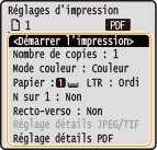 Sélectionnez <N&B> pour lancer l'impression noir et blanc. Sélectionnez <Couleur> pour lancer l'impression couleur.