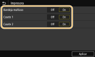 Especifique <On> para cada origen del papel al que quiera aplicar la función de selección automática de origen del papel.