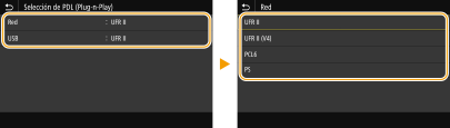 Seleccione un idioma de descripción de página de forma que el equipo se detecte como impresora compatible con dicho idioma si está conectado a un ordenador utilizando Plug-n-Play.