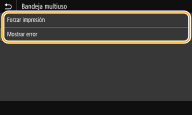 Si el tamaño del papel de cada origen del papel se establece en <Tamaño libre> dentro de <Opciones de papel>, puede especificar qué operación debe realizarse cuando el tamaño del papel cargado es muy distinto al de la opción del controlador de impresora.