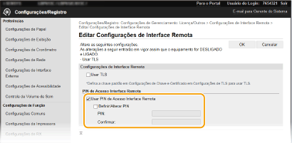 Marque a caixa de seleção [Usar PIN de Acesso Interface Remota] e defina o PIN.