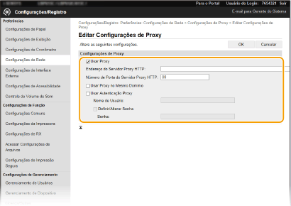 Marque a caixa de seleção [Usar Proxy] e especifique as definições necessárias.