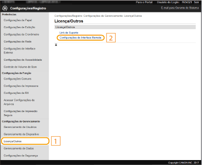 Para mais informações sobre as operações básicas a serem executadas ao configurar a máquina a partir da Interface Remota, consulte Configurando as opções de menu a partir da Interface Remota.