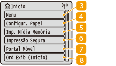 <Ord Exib (Início)>Permite alterar a ordem em que os botões da Tela Início são exibidos. Personalizando a tela Início