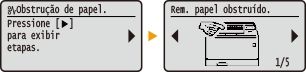 Em alguns casos em que ocorre um erro, são exibidas instruções sobre como reagir a este erro. Siga as instruções na tela para resolver o problema. A tela exibida quando ocorre um encravamento de papel está exibida abaixo como um exemplo.