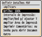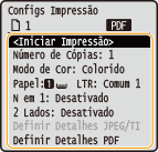 Para um arquivo em PDF, você pode imprimir 9 a 16 páginas de dados de imagem em um lado de uma folha de papel usando <N em 1> em <Definir Detalhes PDF>.