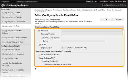 Defina a configuração de RX do I-Fax a partir de um computador, e as configurações de impressão a partir do painel de operações desta máquina.