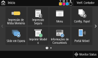 Defina o idioma a ser exibido na tela do painel de operação ou em relatórios, assim como do país ou região onde a máquina será usada.