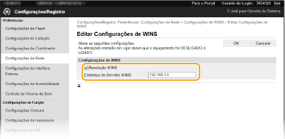 Se o endereço IP do servidor WINS for obtido de um servidor DHCP, o endereço IP obtido sobrescreve o endereço IP inserido na caixa de texto [Endereço do Servidor WINS].