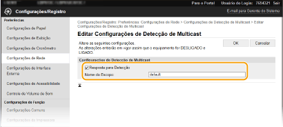 Marque a caixa de seleção para configurar a máquina para responder aos pacotes de descoberta multicast e para ativar o monitoramento pelo software de gerenciamento de dispositivo. ![]() Para alterar o número da porta para a descoberta multicast, consulte Alterando os números de porta.