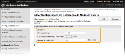 Marque a caixa de seleção para notificar um software de gerenciamento de dispositivo sobre o status de energia da máquina. Quando [Notificar] for selecionado, você pode esperar que a máquina evite comunicação desnecessária durante o modo de suspensão e reduza o consumo total de energia. [Número de Porta]