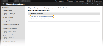 Vous ne pouvez modifier certains réglages que si vous êtes connecté en tant qu'administrateur système.