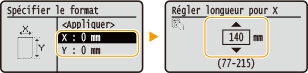 Sélectionnez <X> ou <Y>, et saisissez la longueur de chaque côté avec les touches numériques.