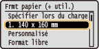 Vous pouvez appeler les formats de papier enregistrés au moyen de la procédure mentionnée ci-dessus en sélectionnant <Personnalisé> dans l'écran de sélection du format du papier pour la cassette à papier ou le bac multifonctions.
