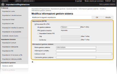 Alcune impostazioni possono essere modificate solo dopo aver effettuato l'accesso in modo Gestore sistema.