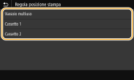 Se la stampa di un documento non è centrata o non rientra nell'intervallo stampabile, regolare la posizione di stampa. È possibile regolare la posizione di stampa per ciascuna alimentazione carta. È possibile regolare la posizione di stampa nell'intervallo da -5,0 a +5,0 mm con incrementi di 0,1 mm.