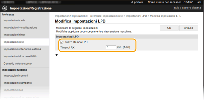 Impostare un valore come tempo di attesa riavvio per la ricezione dei dati. Se la ricezione dei dati non riprende entro il tempo impostato, la stampa viene annullata. |