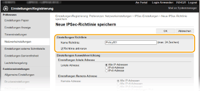 Geben Sie in das Textfeld [Name Richtlinie] alphanumerische Zeichen für den Richtliniennamen ein.