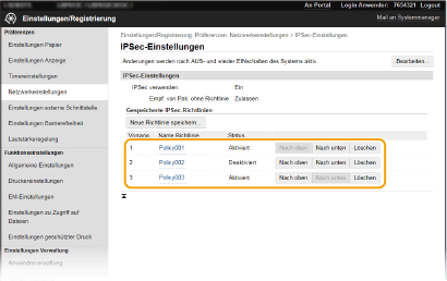 Verwenden des BedienfeldsSie können die IPSec-Kommunikation auch über <Menü> auf dem Bildschirm Startseite aktivieren oder deaktivieren. <IPSec verwenden>