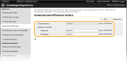 Klicken Sie auf [Anwendername/Passwort ändern].