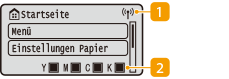 Menge des in den Tonerpatronen verbliebenen TonersZeigt stufenweise die Menge des in den Tonerpatronen verbliebenen Toners an. Diese Anzeige ist ausgeblendet, wenn der Startbildschirm aktiv ist.