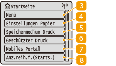 <Anz.reih.f.(Starts.)>Hiermit können Sie die Reihenfolge ändern, in der die Schaltflächen des Bildschirms Startseite angezeigt werden. Anpassen des Bildschirms Startseite