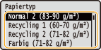 Wenn Sie häufig das einzulegende Papier wechseln müssen, können Sie <Frei> festlegen, das senkt die Anzahl der Schritte, die erforderlich sind, um jedes Mal die Einstellung zu ändern. Beachten Sie jedoch, dass durch diese Einstellung das Gerät den Druckvorgang ausführt, auch wenn die Papiertypeinstellung im Druckertreiber und das im Gerät tatsächlich eingelegte Papier nicht übereinstimmen.