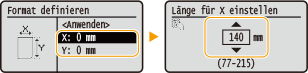 Wählen Sie die <X>-Achse oder <Y>-Achse, und geben Sie mit den Zahlentasten die Länge der jeweiligen Seite ein.