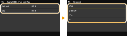 Wählen Sie eine Seitenbeschreibungssprache, damit das Gerät als ein mit dieser Sprache kompatibler Drucker erkannt wird, wenn Sie es über Plug & Play an einen Computer anschließen.