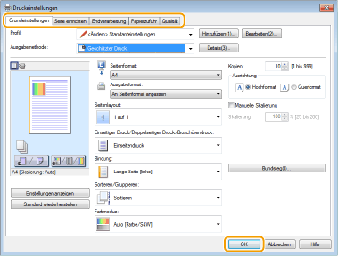Legen Sie gegebenenfalls die Druckeinstellungen fest, und klicken Sie auf [OK].