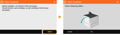 ), um einfache Lösungen anzuzeigen. Wenn die Schritte am Display schwer zu verstehen sind, lesen Sie die folgenden Abschnitte zur Behebung von Papierstau./b_dis494.gif)