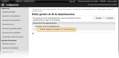 Seleccione la casilla de verificación [Utilizar Administración de ID de departamento].