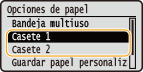 (<Casete 2>) aparecerá únicamente cuando esté instalado el Módulo de alimentación por cassette opcional.|