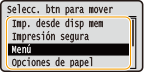 Una pulsación larga sobre <Mover izq.> o <Mover der.> hace que el botón seleccionado se desplace de forma continua.