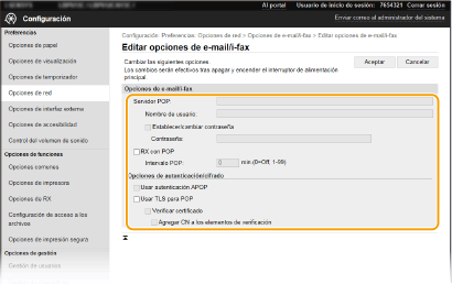 Seleccione la casilla de verificación para cifrar la comunicación con el servidor POP3 mediante TLS. Seleccione la casilla de verificación de [Verificar certificado] o [Agregar CN a los elementos de verificación] en función de sus necesidades.