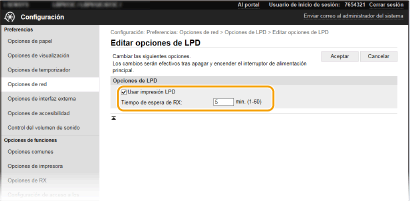 Seleccione la casilla de verificación para imprimir a través de LPD. Cuando no utilice la impresión LPD, quite la marca de la casilla de verificación. [Usar impresión RAW]
