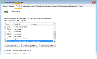 El [Nombre de puerto] se introduce automáticamente. Puede cambiarlo en caso necesario.