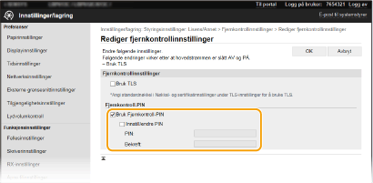 ![]() Bruke betjeningspaneletDu kan få tilgang til PIN-kodeinnstillingene for Fjernkontroll fra <Meny> på Hjem-skjermen. <Fjernkontrollinnstillinger>