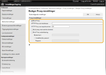 Merk av for [Bruk Proxy], og angi de nødvendige innstillingene.