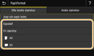 ![]() ![]() Hvis du registrerer papirformatene du bruker ofte på knappene <S1> til <S3>, kan du hente dem frem med ett trykk. Registrere et egendefinert papirformat