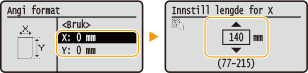 skriv inn papirbredden <Y> skriv inn papirlengden ![]() ![]() |