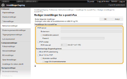 [Innstillinger for e-post/I-Fax].